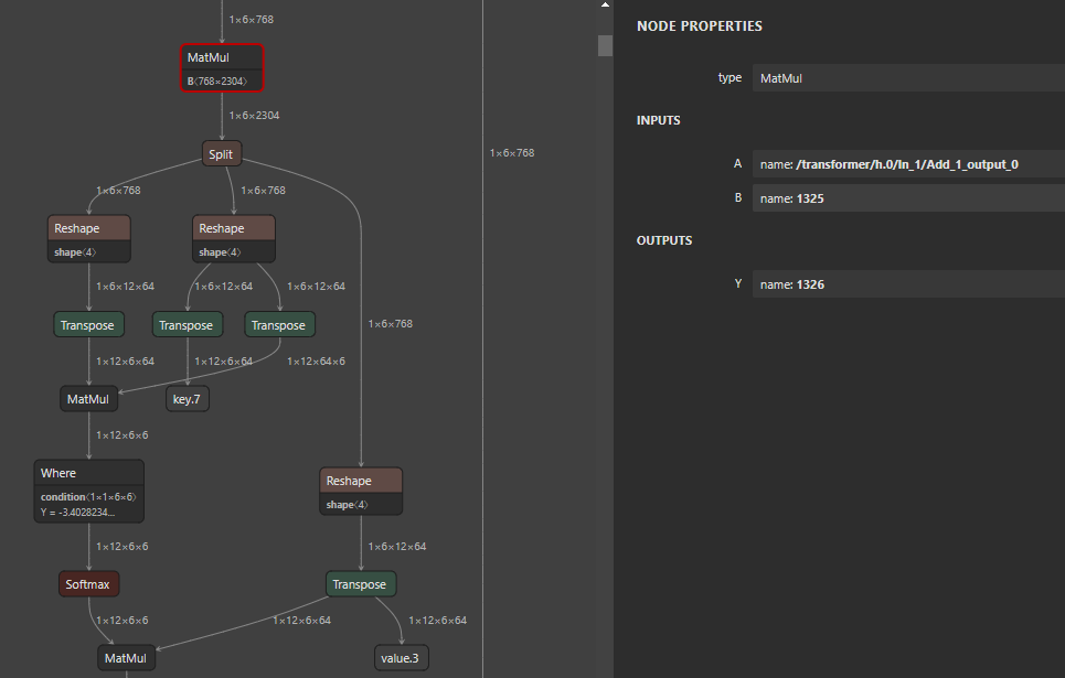 위쪽은 원본 모델을 ONNX export만 했을 때의 시각화 결과이고, 아래쪽은 외부 라이브러리 API를 호출하고 받아온 모델의 시각화 결과입니다. 기존의 768x768 Q, K, V가 오른쪽 그림에서는 768x2304로 뭔가 변경이 되면서 사라졌음을 확인할 수 있습니다. 저희는 외부 API에 대한 수정 권한은 없지만 읽기 권한은 있었기 때문에 디버깅을 통해 onnxsim.simplify를 호출한 이후에 이런 현상이 발생한다는 것까지는 확인할 수 있었습니다