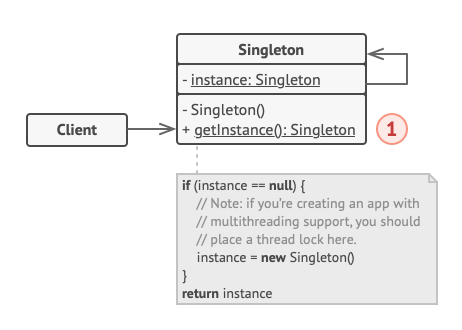 싱글턴 패턴은 GoF에서 소개하는 여러 가지 디자인 패턴 중 구현 난이도가 쉬운 편에 속하는데요. 우선 클래스 다이어그램을 먼저 보고 실제 구현된 코드를 같이 보면서 얘기해 보겠습니다