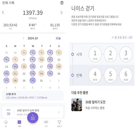 아예 운동 경험이 없고 가볍게 시작해 보고 싶다면 런데이 앱을 통해서 걷기부터 시작하는 것을 추천한다. 단계별로 시간을 조금씩 늘려가며 걷기 훈련, 달리기 훈련 등이 제공되므로 본인의 수준에 맞게 체계적으로 시작해 볼 수 있을 것이다.